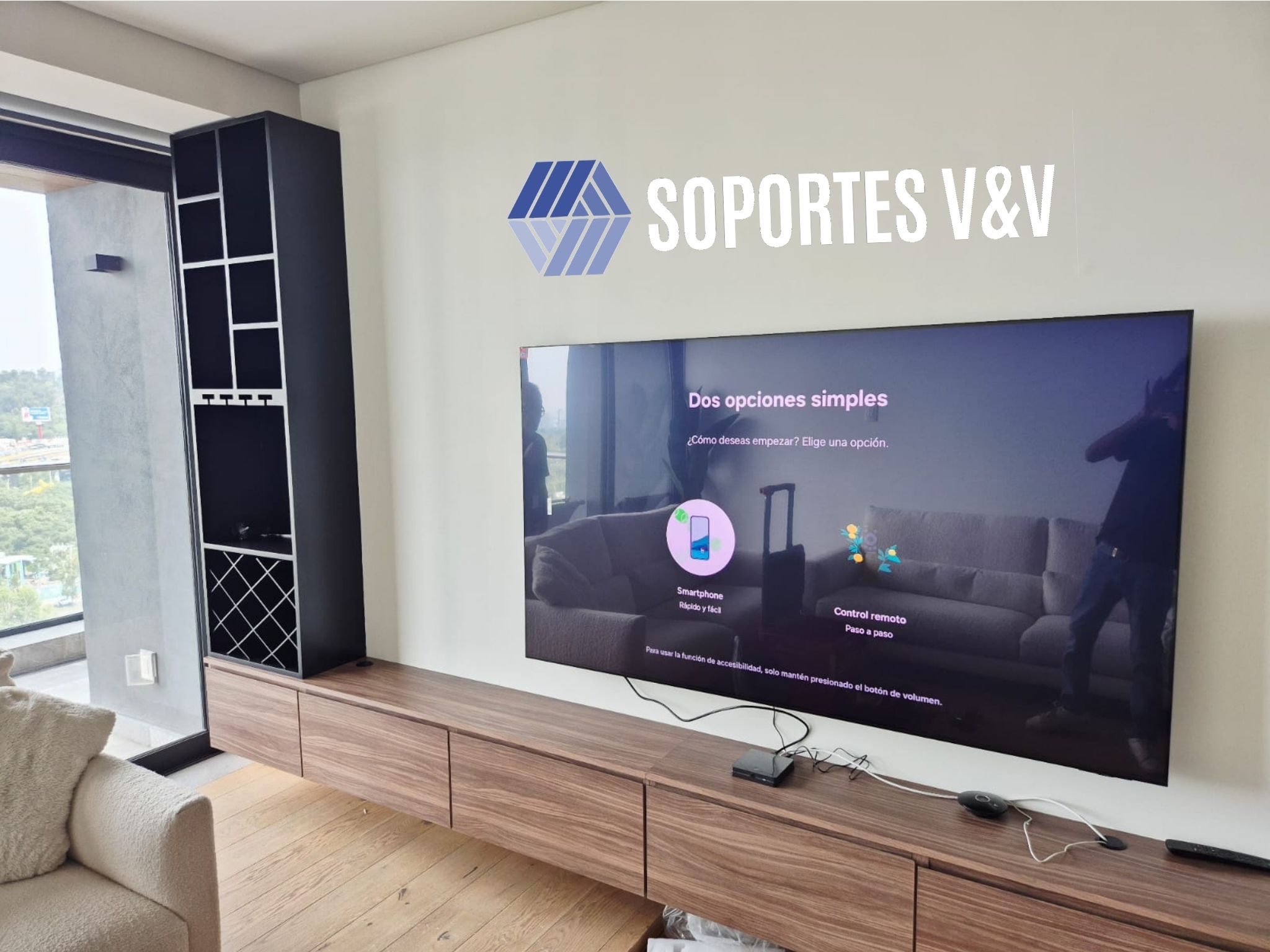 Facilita el acceso a cables, la limpieza sin desmontar y mejora el ángulo de visión en espacios amplios, brindando una instalación sólida, práctica y profesional.